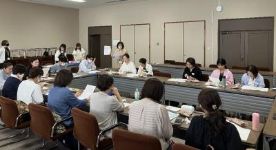 また、研修会終了後は “病院に勤務する歯科衛生士交流会”を開催し、23名の方にご参加いただきました。初めに、歯科衛生士のラダー(能力やキャリアを段階的に評価・育成するためのシステム)について紹介しました。その後は、お菓子を囲んでのフリートークが和やかな雰囲気の中で行われ、参加者同士の交流が深まり、活発な情報交換もなされるなど、今年度も好評を博しました。