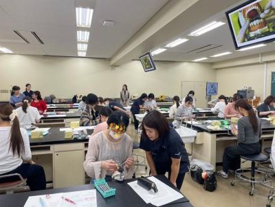 講師には、歯科・林美穂医院の歯科衛生士・延田万里先生をお迎えし、補助講師として溝上歯科学研都市クリニックの歯科衛生士・延田つぼみ先生にもご協力いただきました。
